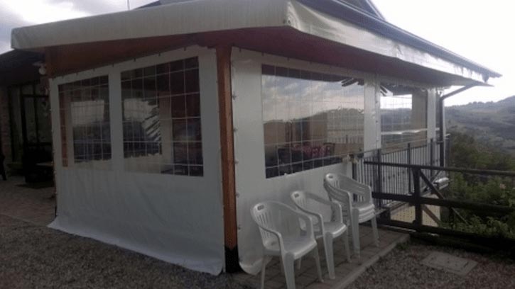 Soluzioni personalizzate, realizzazione e riparazione di coperture per locali, bar, ambulanti e ristoranti finestrati e non.